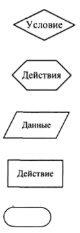 Установите соответствие обозначения блоков схемы алгоритма и их назначению