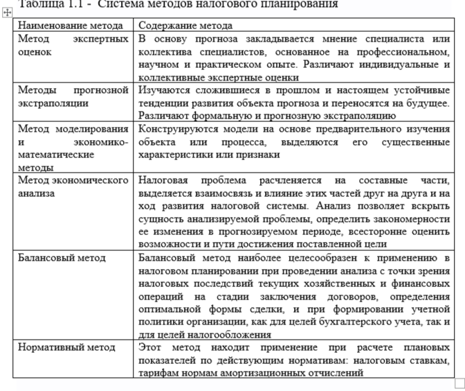 1.2 Формы, методы и этапы налогового планирования……………………..10