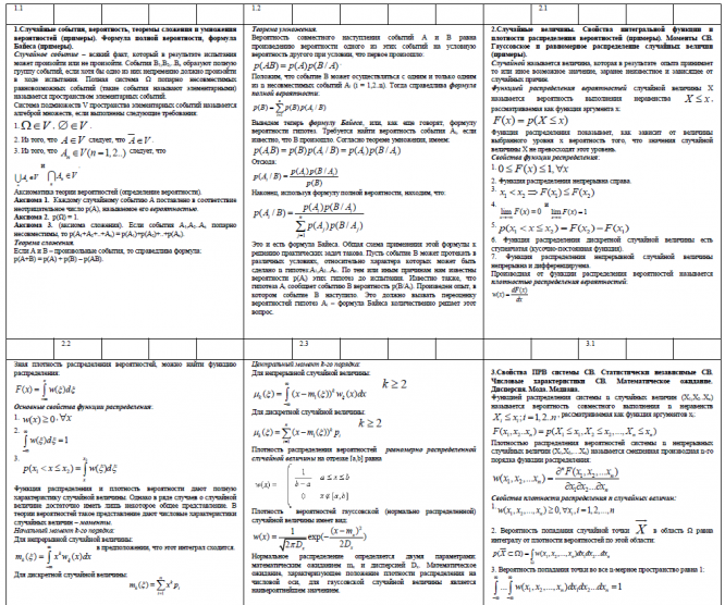 Характеристики ответов (шпаргалок) к экзамену