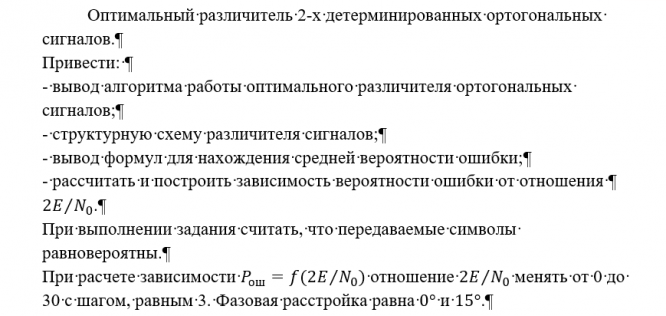 ДЗ: Оптимальный различитель двух детерминированных ортогональных сигналов вариант 5