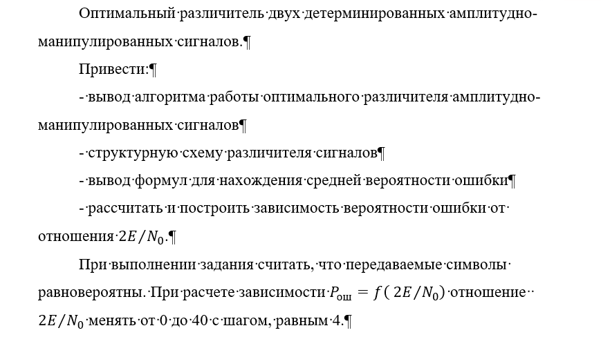 ДЗ: Оптимальный различитель двух детерминированных амплитудно-манипулированных сигналов вариант 6