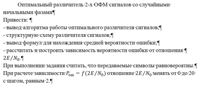 ДЗ: Оптимальный различитель двух ОФМ сигналов со случайными начальными фазами вариант 14
