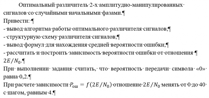 ДЗ: Оптимальный различитель двух амплитудно-манипулированных сигналов со случайными начальными фазами вариант 16