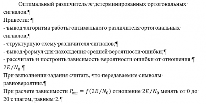 ДЗ: Оптимальный различитель m детерминированных ортогональных сигналов вариант 18