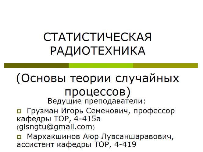 Для студентов НГТУ по предмету Статистическая радиотехникаЛекции - PDFЛекции - PDF 2022-08-31СтудИзба