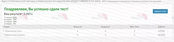 📝Помощь с тестом «КМ-2. Непрерывные и дискретные случайные величины» по курсу «Статистические методы в инженерных исследованиях» в ИДДО – гарантия результата!☑️