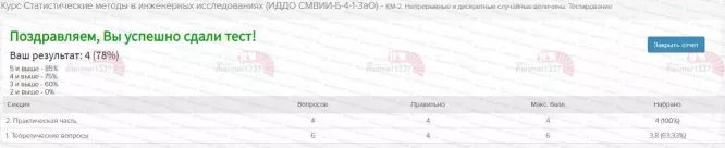 📝Помощь с тестом «КМ-2. Непрерывные и дискретные случайные величины» по курсу «Статистические методы в инженерных исследованиях» в ИДДО – гарантия результата!☑️