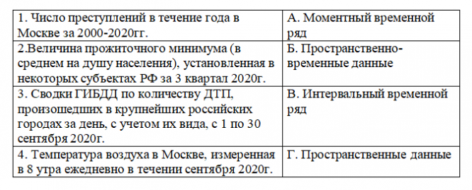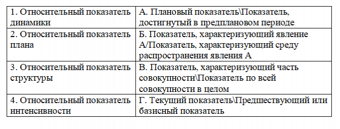 2. Найдите соответствие между видом показателя динамики и его практическим применениемB. Средний темп роста