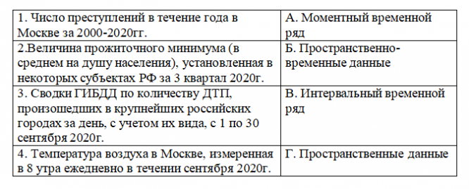 Найдите соответствие между переменной и ее наличию или отсутствию упорядочения во времени
