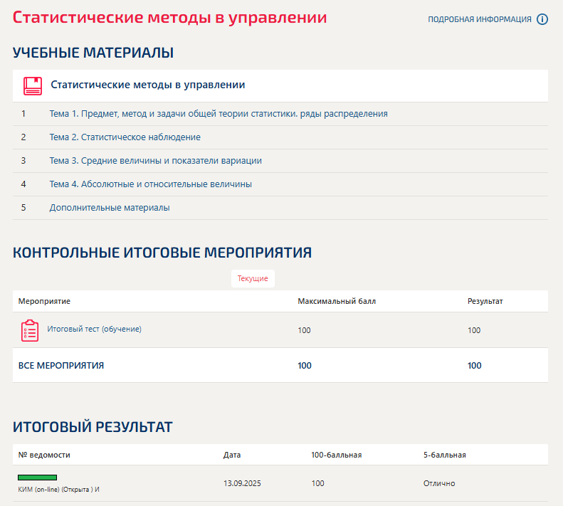 💯 Статистические методы в управлении (Темы 1-4) МосАП Ответы на итоговый тест