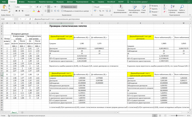 2) Двухвыборочный t-тест с одинаковыми дисперсиями