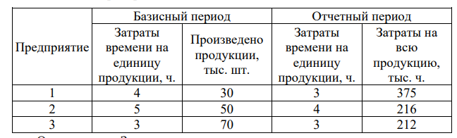 Определить: Затраты времени на производство в среднем по объединению за: базисный период; отчетный период.