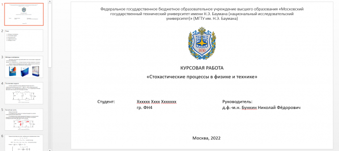 Полностью зачтенная курсовая работа по "Стохастическим системам в физике и технике", сам курсач, презентация и текст для выступлений. Для сдачи этого чуда нужно его только купить и ответить по тексту для выступления, легкий отл.