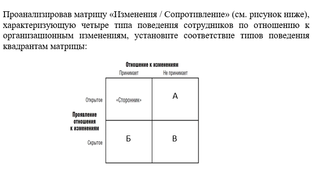 Установите соответствие между причинами сопротивления изменениям со стороны сотрудников и реакцией на изменения (на основе подходов Дж. Коттера и Ф. Шлезингера):