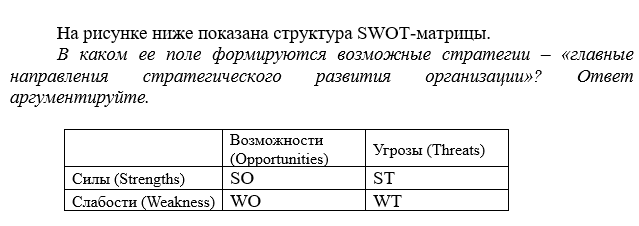 Состояние внутренней среды организации исследуется в нескольких сегментах SWOT-матрицы: …