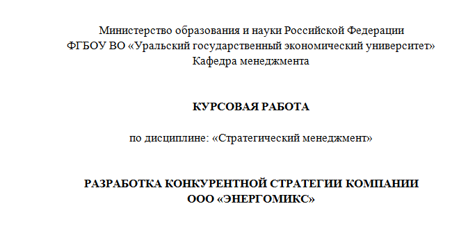 Для студентов УрГЭУ по предмету Стратегический менеджментРАЗРАБОТКА КОНКУРЕНТНОЙ СТРАТЕГИИ КОМПАНИИ ООО «ЭНЕРГОМИКС» РАЗРАБОТКА КОНКУРЕНТНОЙ СТРАТЕГИИ КОМПАНИИ ООО «ЭНЕРГОМИКС»
