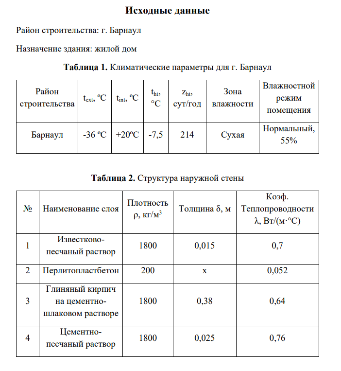 Лабораторная работа: Теплотехнический расчет наружных ограждающих конструкций