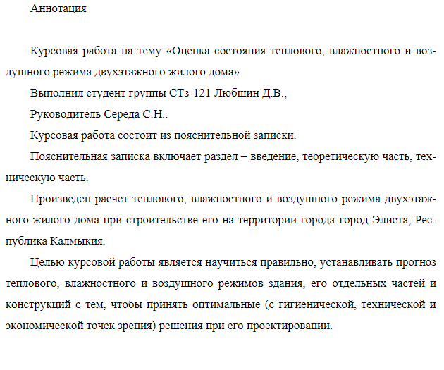 Курсовая работа: Оценка состояния теплового, влажностного и воздушного режима двухэтажного жилого дома вариант 25