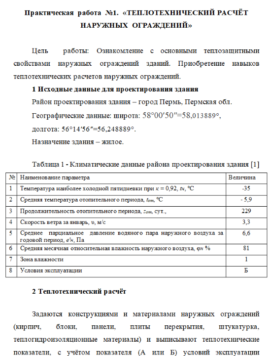 Практические работы. ТЕПЛОТЕХНИЧЕСКИЙ РАСЧЁТ НАРУЖНЫХ ОГРАЖДЕНИЙ.ОПРЕДЕЛЕНИЕ ТЕПЛОТЕХНИЧЕСКИХ ХАРАКТЕРИСТИК НАРУЖНОГО ОГРАЖДЕНИЯ ЗДАНИЯ