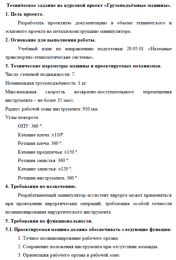 Для студентов МГТУ им. Н.Э.Баумана по предмету Строительная механика и металлические конструкцииРобототехнический медицинский манипуляторРобототехнический медицинский манипулятор