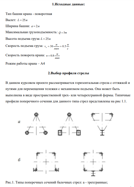 Для студентов МГТУ им. Н.Э.Баумана по предмету Строительная механика и металлические конструкцииПроектирование стрелы башенного кранаПроектирование стрелы башенного крана