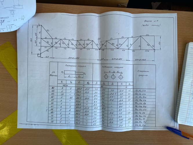 Ферма N 7. ДЗ выдано Вершинским А.В. Вариант 108. В файле фото рукописных листов. Почерк аккуратный ( "печатный") . Качество фото высокое. Эпюры построены аккуратно.