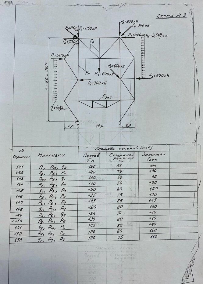 ДЗ 3: Определение усилий в стержнях статически неопределимой фермы вариант 146