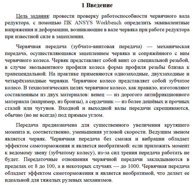 ДЗ: Домашнее задание №1 "Расчет на прочность вала червяка в червячном редукторе с помощью ПК ANSYS Workbench"