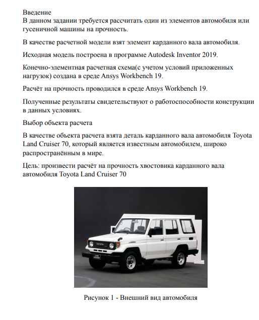 Для студентов МГТУ им. Н.Э.Баумана по предмету Строительная механика транспортных средствРасчёт на прочность элемента карданного вала автомобиля Toyota Land Cruiser 70Расчёт на прочность элемента карданного вала автомобиля Toyota Land Cruiser 70