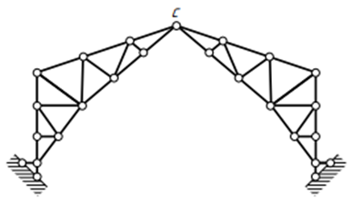 Условие неизменяемости для объемной системы имеет вид: n = 6Д – С ≤ 0 С ≥ 6Д И то и другое Любое неизменяемое тело в строительной механике называется Диском Шарниром Кинематической связью По способу соединения стержней представленная на рисунке система называется конструкция с жесткими узлами - рама конструкция с шарнирными узлами - ферма комбинированная система - рама с затяжкой При расчёте статически неопределимых систем необходимо предварительно задаваться размерами сечений элементов или соотношениями жёсткостей элементов всеми геометрическими размерами элементов гибкостью элементов Степень свободы пространственной кинематической определяется по формуле n = 6Д – С n = 3Д – С (где Д – количество дисков, С - число кинематических связей) n = 6Д На рисунке представлена Оболочка вращения положительной Гауссовой кривизны Оболочка вращения отрицательной Гауссовой кривизны Оболочка вращения нулевой Гауссовой кривизны Устройство, препятствующее перемещению в одном каком-либо направлении, в строительной механике называется Диском Шарниром Кинематической связью Степень свободы плоской кинематической цепи определяется по формуле n = 6Д – С n = 3Д – С (где Д – количество дисков, С - число кинематических связей) n = 6Д На рисунке представлена Оболочка вращения положительной Гауссовой кривизны Оболочка вращения отрицательной Гауссовой кривизны Оболочка вращения нулевой Гауссовой кривизны Для образования неизменяемой системы при присоединении шарнирного узла к диску узел должен быть присоединен к диску одним стержнем узел должен быть присоединен к диску с помощью двух стержней, оси которых совпадают узел должен быть присоединен к диску с помощью двух стержней, оси которых не совпадают Оси глобальной системы координат при использовании метода конечных элементов обозначают x, y, z x°, y°, z° xi, yi, zi Матрица трансформации координат Тk представляет собой матрицу перевода перемещений из локальной системы координат в глобальную матрицу перевода перемещений из глобальной системы координат в локальную матрицу перевода перемещений в единичную матрицу При решении двухмерных задач строительной механики, связанных с расчетом стержневых систем, конструкцию разбивают на конечные элементы в виде прямоугольных стержней постоянного сечения треугольных и прямоугольных конечных элементов тетраэдра или параллелепипеда Оси локальной системы координат при использовании метода конечных элементов обозначают x, y, z x°, y°, z° xi, yi, zi При решении трёхмерных задач строительной механики, связанных с расчетом стержневых систем, конструкцию разбивают на конечные элементы в виде прямоугольных стержней постоянного сечения треугольных и прямоугольных конечных элементов тетраэдра или параллелепипеда На поверхностях положительной гауссовой кривизны отсутствуют направления с нулевой кривизной направления с отрицательной кривизной и с нулевой и с отрицательной кривизной Защемляющая опора имеет шесть кинематических связей три кинематические связи одну кинематическую связь Представленная на рисунке опора называется заделка шарнирно-неподвижная шарнирно-подвижная Представленная на рисунке опора называется заделка шарнирно-неподвижная шарнирно-подвижная Условие неизменяемости для плоской системы имеет вид: n = 3Д – С ≤ 0 n = 3Д – С ≥ 0 n = 6Д – С ≤