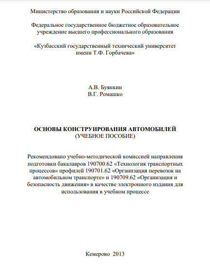 Книга: ОСНОВЫ КОНСТРУИРОВАНИЯ АВТОМОБИЛЕЙ (УЧЕБНОЕ ПОСОБИЕ)