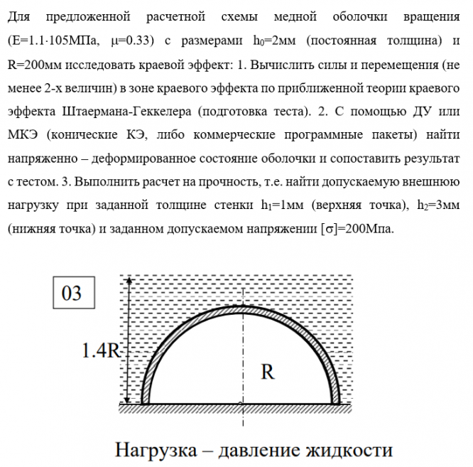 ДЗ 1: ДЗ1-Исследование краевого эффекта в задаче изгиба осесимметрично нагруженных оболочек вращения вариант 3