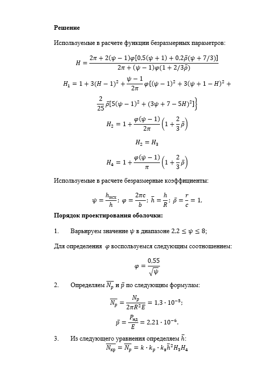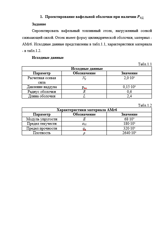 Работа включает две части - проектирование вафельной оболочки при наличии давления наддува и проектирование вафельной оболочки при отсутствии давления наддува.