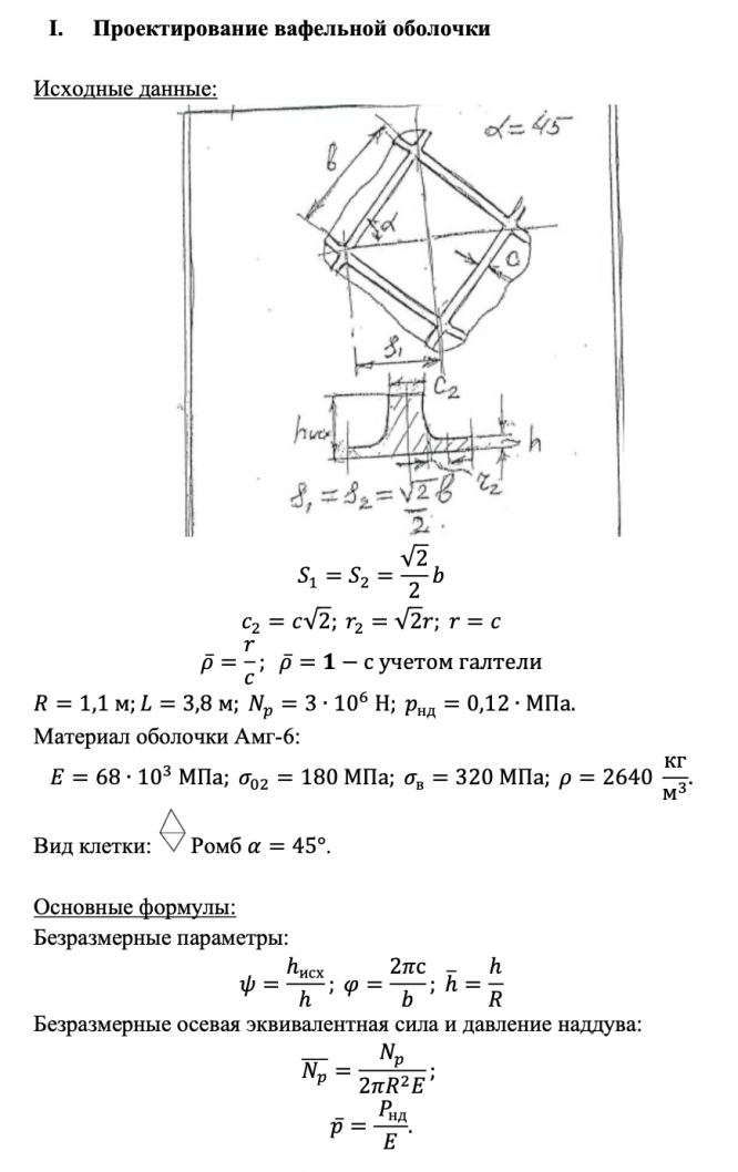 Для студентов МГТУ им. Н.Э.Баумана по предмету Строительная механикаПроектирование вафельной оболочкиПроектирование вафельной оболочки