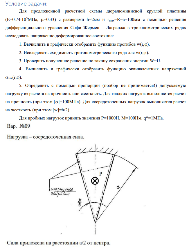 ДЗ 2: Расчёт круглых пластин в тригонометрических рядах вариант 9