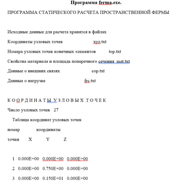 В файле представлены данные для расчета конструкции в программе ferma.exe.