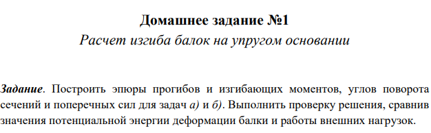 ДЗ 1: Расчет изгиба балок на упругом основании вариант 8