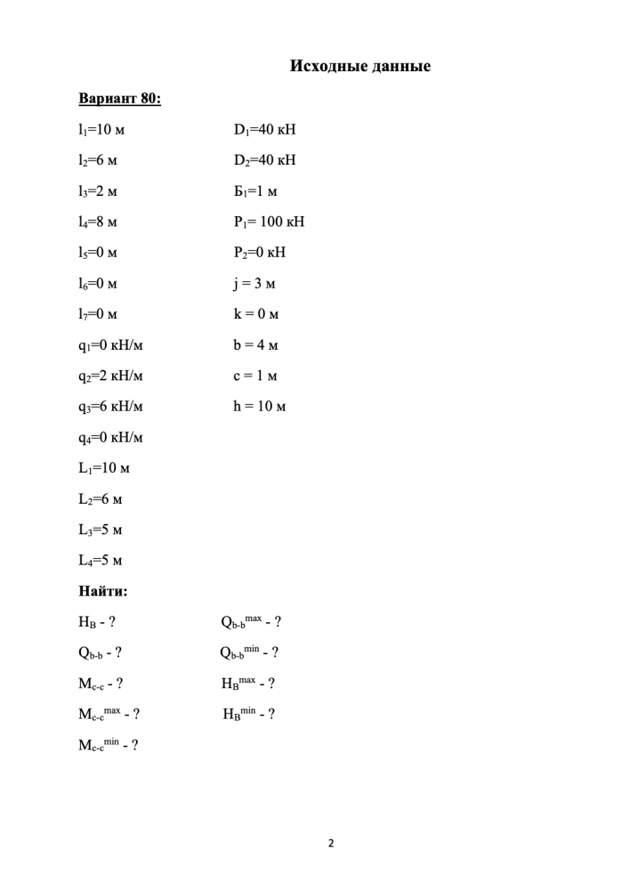 ДЗ№1 «Определение усилий в балках по линиям влияния» 80 вариант, для Вершинского А.В.