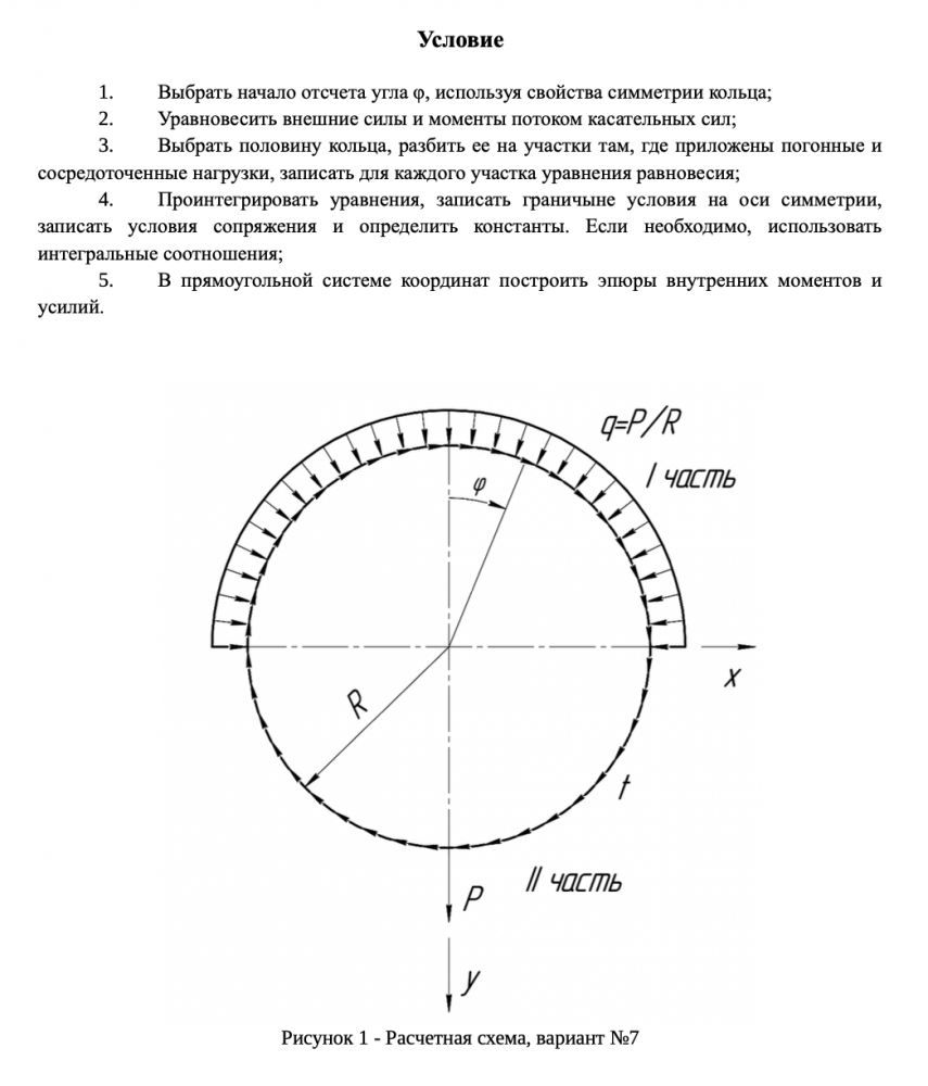 ДЗ: Уравнения равновесия кольца + построение эпюр сил, моментов вариант 7