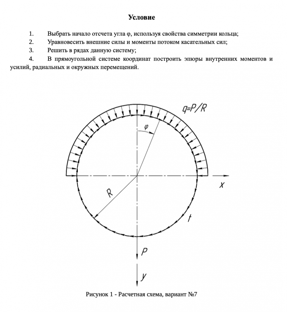 ДЗ: Метод тригонометрических рядов для кольца + эпюры вариант 7