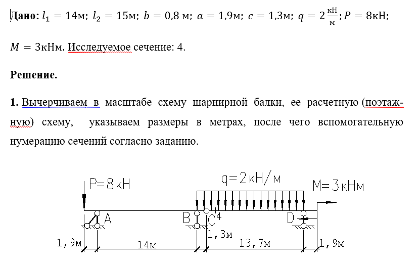 Работа №1. Расчёт статически определимой многопролётной балки. Вариант 1135