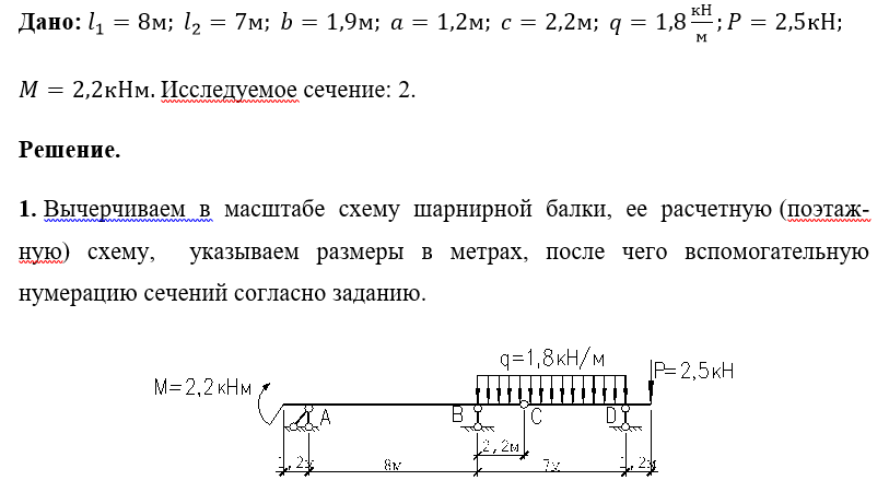 Работа №1. Расчёт статически определимой многопролётной балки. Вариант 1632