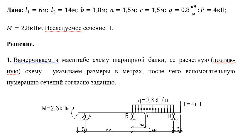 Работа №1. Расчёт статически определимой многопролётной балки. Вариант 1916