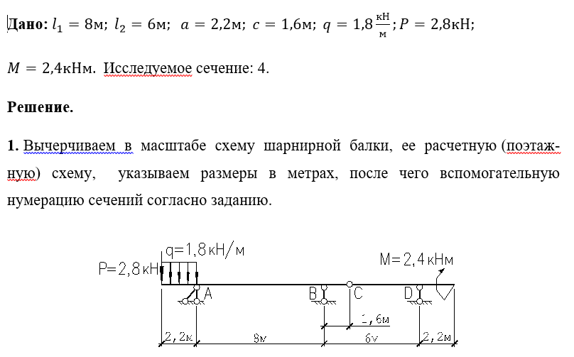 ДЗ 1: Работа №1. Расчёт статически определимой многопролётной балки. вариант 2134