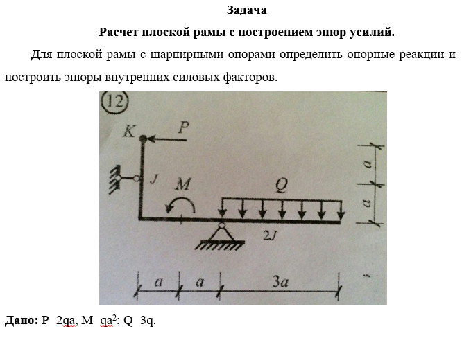 ДЗ: Задача. Расчет плоской рамы с построением эпюр усилий. вариант 12
