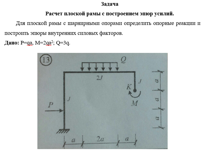 ДЗ: Задача. Расчет плоской рамы с построением эпюр усилий. вариант 13