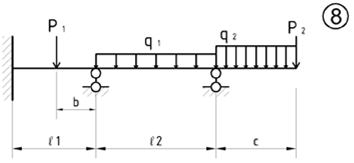 Буквы | l1, м | b, м | q1, кHм | l2, м | Р1, кН | С, м | q2, кН/м | l3, м | Р2, кН |