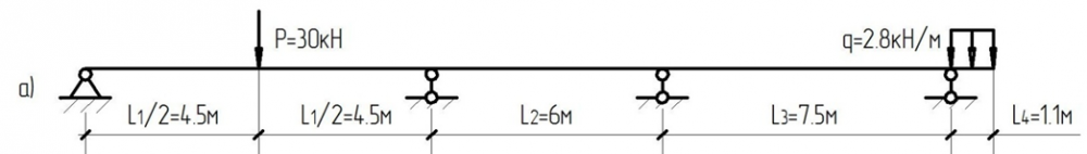 Задача: Расчет неразрезной балки по теории предельного равновесия.