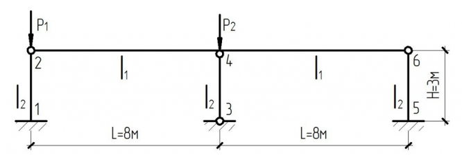 Главная » Учебные материалы » Строительная механика » Решения задач » Несколько классов/семестров » Расчет плоской рамы на устойчивость методом перемещений.