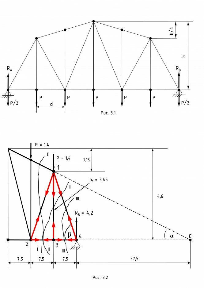 а) определить усилия в стержнях заданной панели, включая правую и левую стойки, применяя способ вырезания узлов и способ сквозных сечений;
